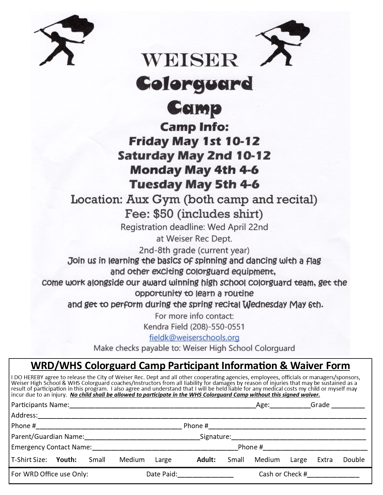 Welcome to the City of Weiser Recreation Department’s online edition of our ongoing sports and activities guide.
